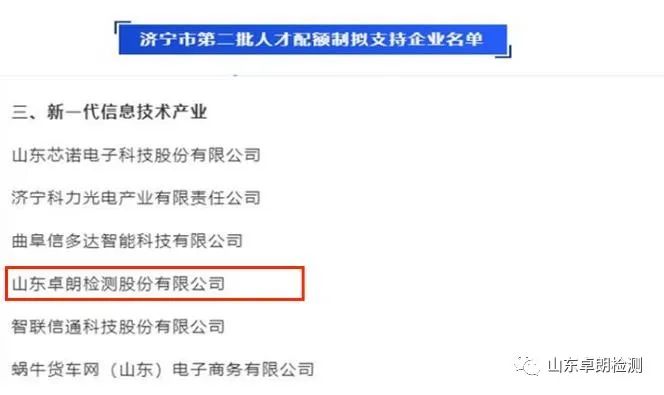 為支持攀登企業(yè)自主引進(jìn)高層次急需緊缺人才,近日市委人才工作領(lǐng)導(dǎo)小組辦公室組織開(kāi)展了第二批重點(diǎn)企業(yè)人才配額制評(píng)審。經(jīng)企業(yè)申報(bào)、專家評(píng)審,最終發(fā)布《濟(jì)寧市第二批人才配額制擬支持企業(yè)名單》,山東卓朗檢測(cè)股份有限公司等企業(yè)入選。